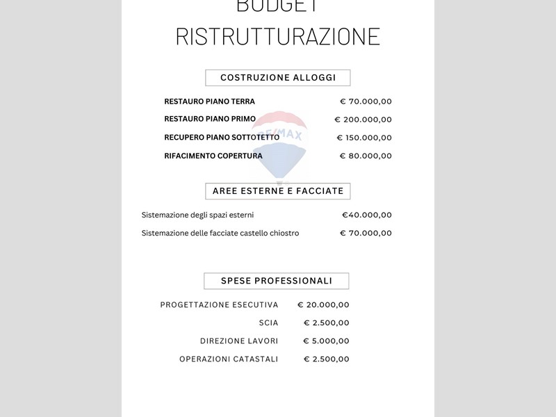 Sebbene la soluzione necessiti di profondi interventi di restauro e trasformazione, la collocazione e la posizione la rendono di un pregio ed un fascino unici. Sia che si voglia realizzare la propria lussuosa residenza, sia che se ne vogliano ricavare diversi alloggi, sia che si voglia trasformarlo in una prestigiosa struttura ricettiva, gli spazi e le caratteristiche dell'immobile, lo rendono la scelta perfetta per la realizzazione dei propri sogni e desideri.