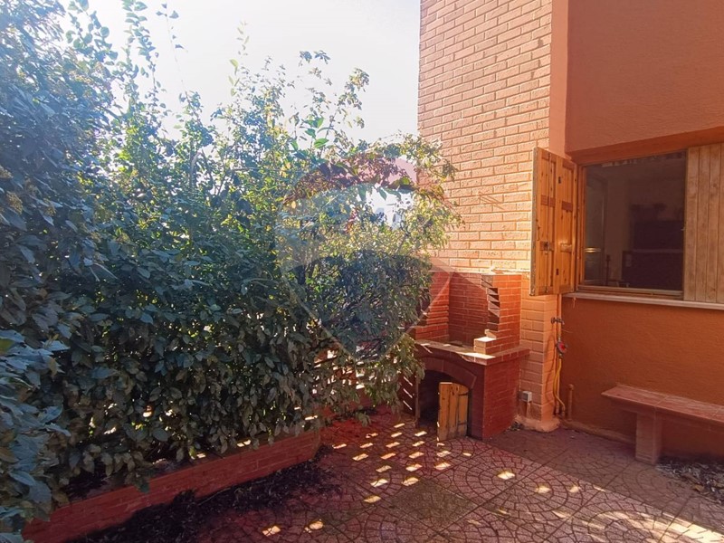 L'appartamento si eleva su due livelli con una superficie complessiva di 60 mq, unendo spazio e stile. Al piano terra di questa villetta a schiera si trova, attraversando un giardino privato allestito con un barbecue, una cucina abitabile con soggiorno accogliente arredata, con camino alimentato a legna.