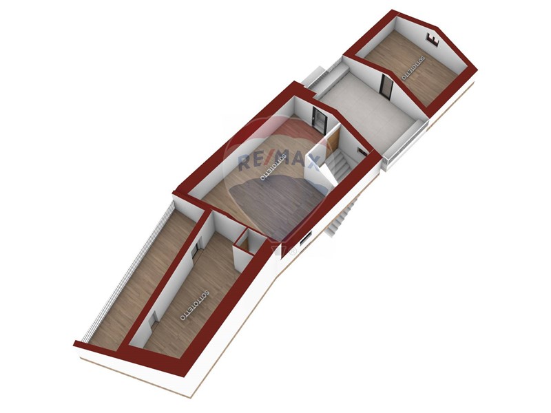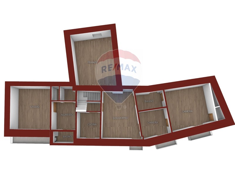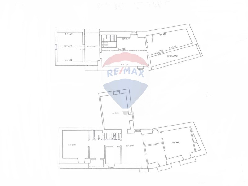 Secondo piano: circa 82 mq, composto da più vani con affaccio su strada principale e scala interna che conduce al livello superiore.