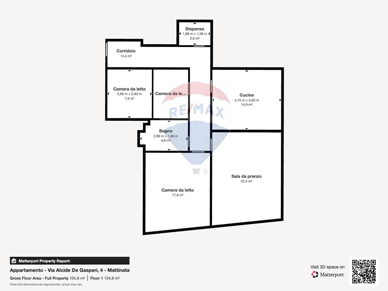 Dispone di quattro locali, di cui tre camere da letto e un ampio soggiorno, ideale per momenti di relax in famiglia.