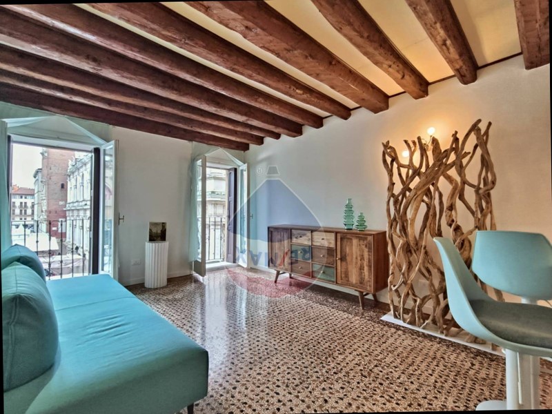 Nel cuore del centro storico di Vicenza, affacciato direttamente su Piazza dei Signori e sulla Basilica Palladiana, proponiamo in locazione un appartamento esclusivo di circa 50 m².
