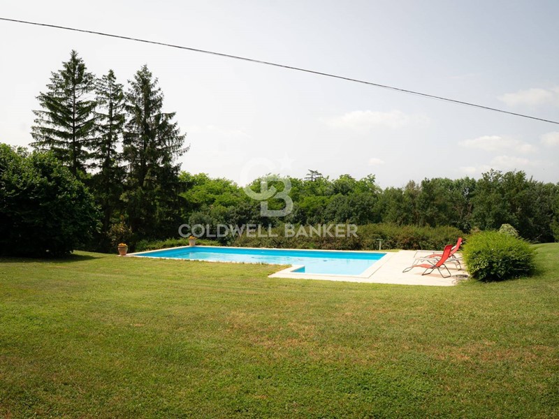 Parco/terreno: ca. 20.000 m² complessivi con giardino allitaliana e piscina scenografica.
