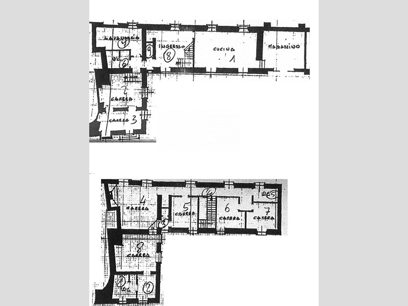 Zona giorno: ampio ingresso con scala in pietra, due saloni luminosi, cucina open space di generose dimensioni con affaccio su ampio portico fronte giardino.