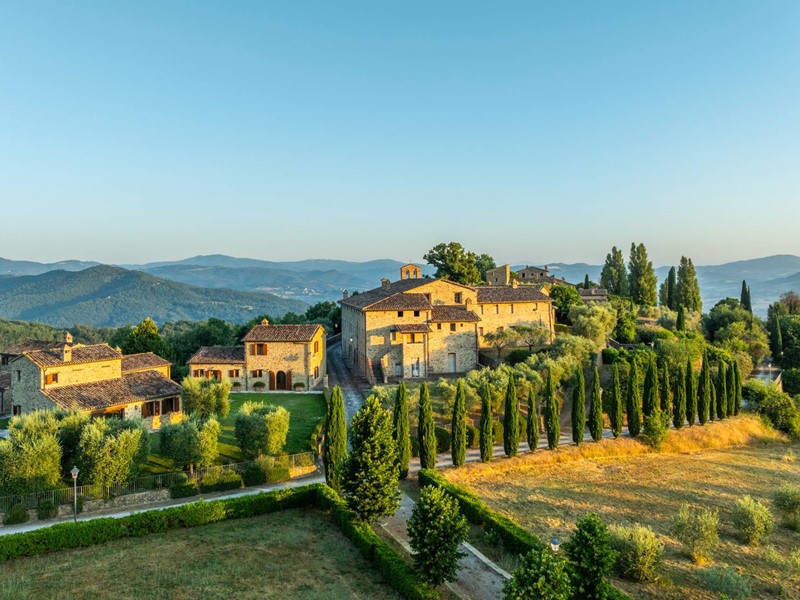 Immerso nelle sinuose colline che guardano la Val Tiberina, sorge questo magnifico borgo medievale del IX secolo che gode di una posizione appartata ma a soli cinque minuti di distanza dai principali servizi.
