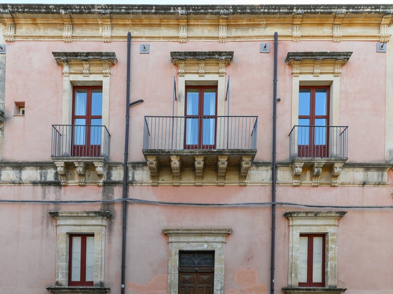 Questo edificio pare risalire alle prime fasi della ricostruzione della città dopo il disastroso terremoto del 1693. Ledificio apparteneva presumibilmente ad un più ampio fabbricato mai completato o successivamente demolito: un possente e raffinato fornice per laccesso al cortile di un palazzo destinato forse allamministrazione della giustizia. Il progetto di restauro datato 2008, ha eliminato tutte le divisioni interne sopravvenute, ricostituendo al piano terra lunità spaziale del vano archivoltato che si sviluppa, come un tempo, dalla strada fino al giardino interno: un corridoio serrato da spesse mura, sormontato da una volta di blocchi di pietra tufigna locale, con pareti rivestite da intonaco bianco interrotto dallarchitettura...