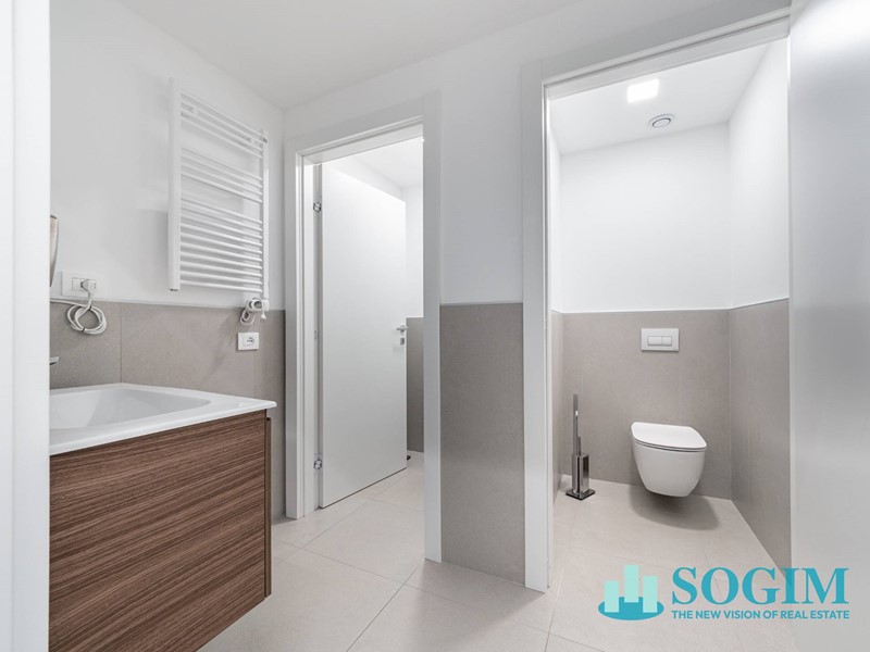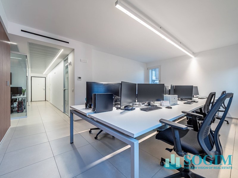 L'ufficio gode di un doppio accesso fruibile sia dalla strada sia dall'atrio comune del condominio e di una ottima visibilità grazie alle 3 vetrine fronte via Piave sia ai passanti sia ai passeggeri del treno dell'adiacente stazione ferroviaria.