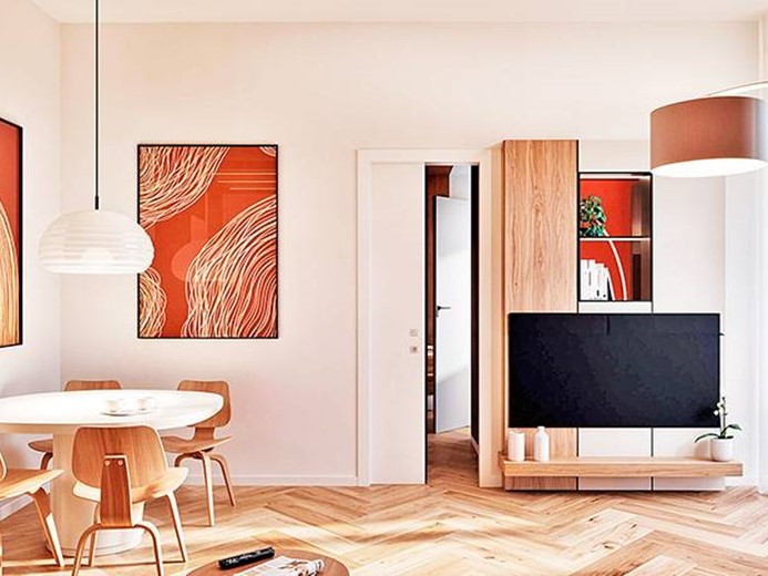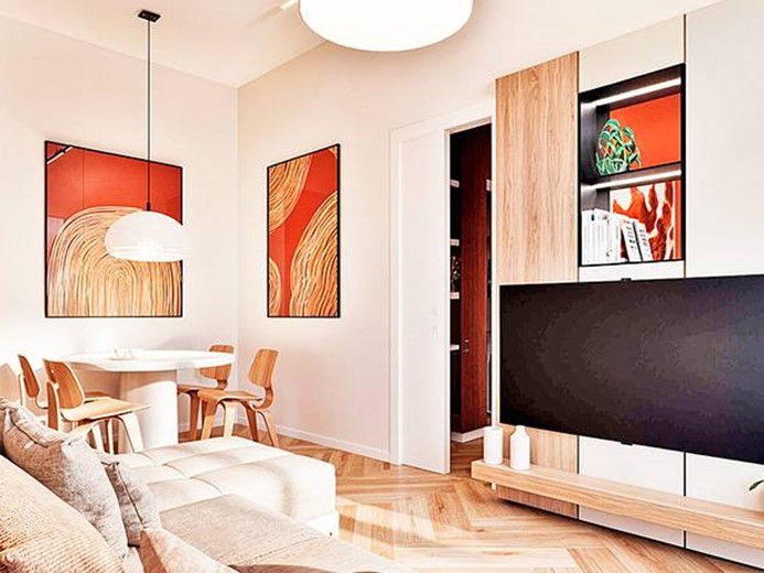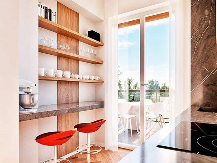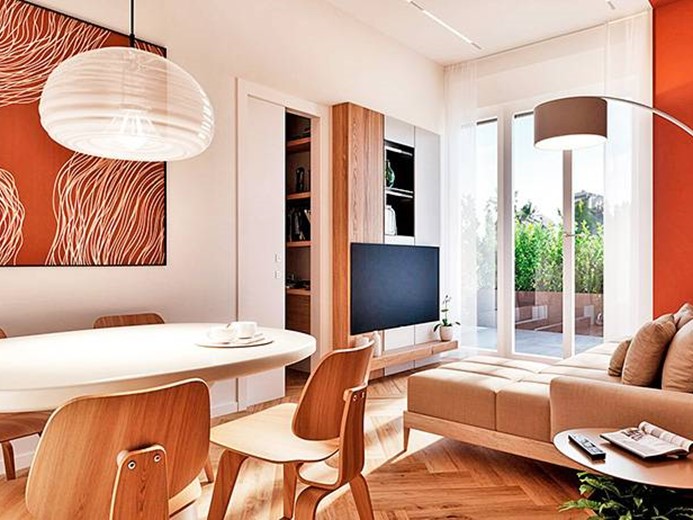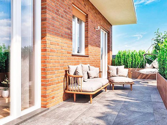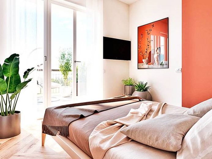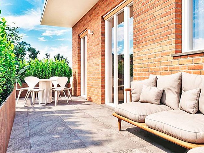 Internamente l'appartamento sarà composto da ingresso con zona lavanderia, cucina separata con accesso al terrazzo, soggiorno con accesso al terrazzo, ampia camera padronale con accessi al terrazzo dotata di cabina armadio e bagno finestrato.