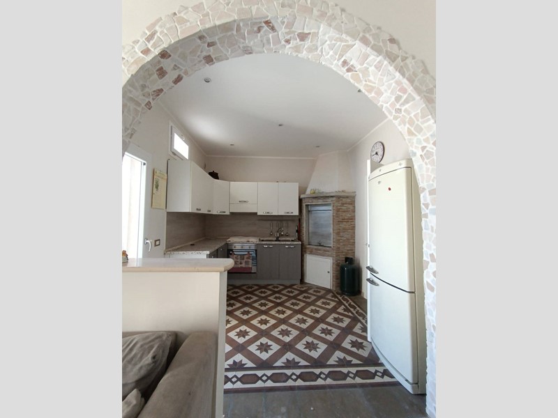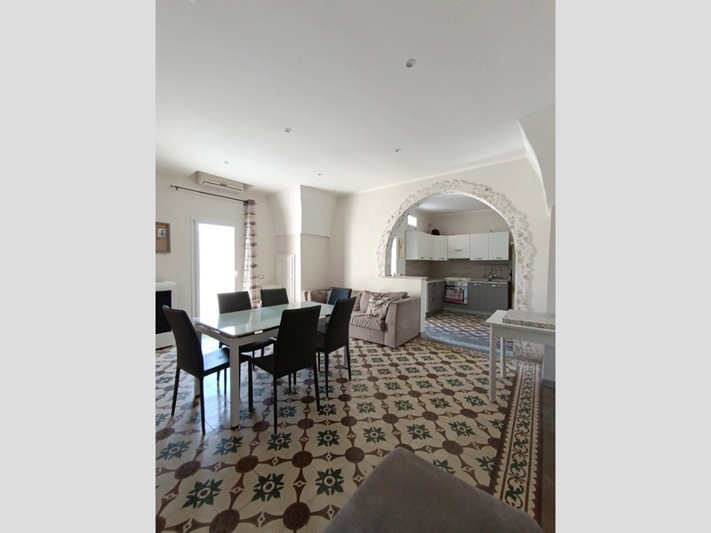 La casa si dispone su una metratura interna di circa 100 mq ed è composta da cucina con camino, salotto ampio e luminoso, camera da letto matrimoniale, seconda camera molto spaziosa, anti-bagno con zona lavanderia, bagno nuovissimo con doccia, piano ammezzato comodo come vano deposito o camera-studio; completano la proprietà sia un terrazzo a livello, accessibile comodamente dalla zona giorno, sia il lastrico solare con scorcio mare e vista panoramica su tutto il centro storico.