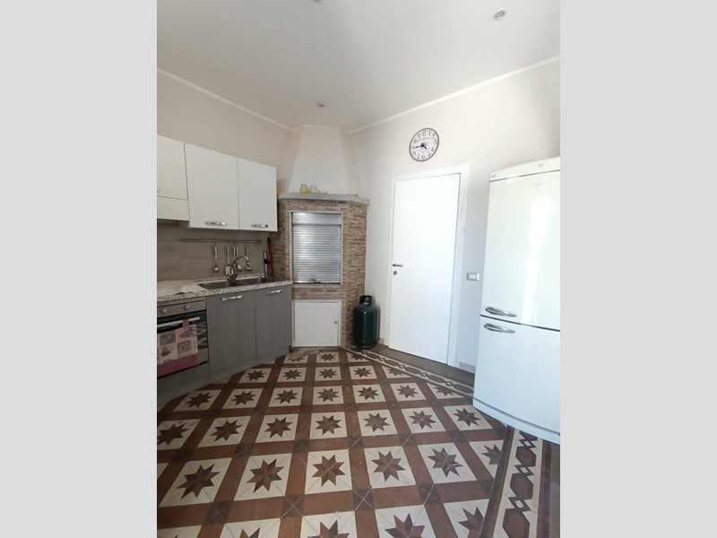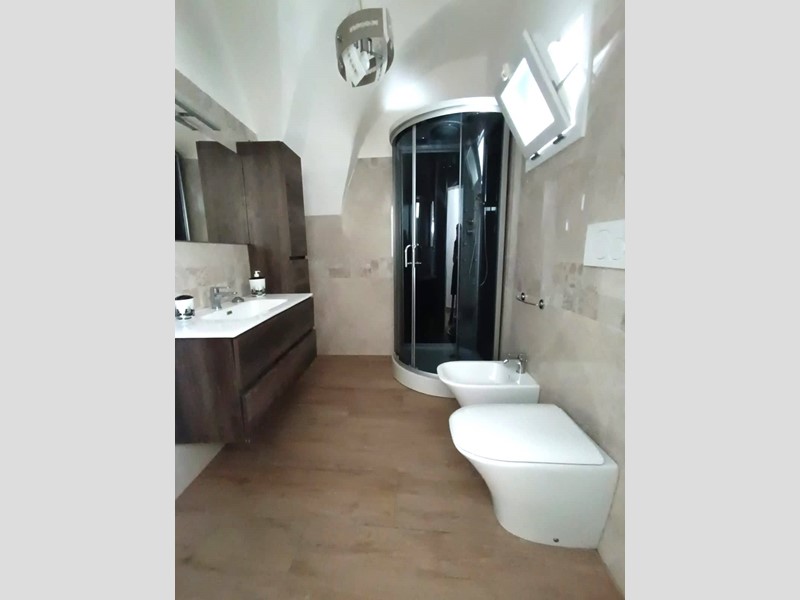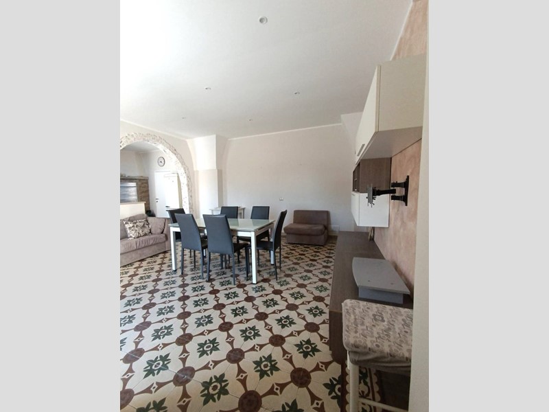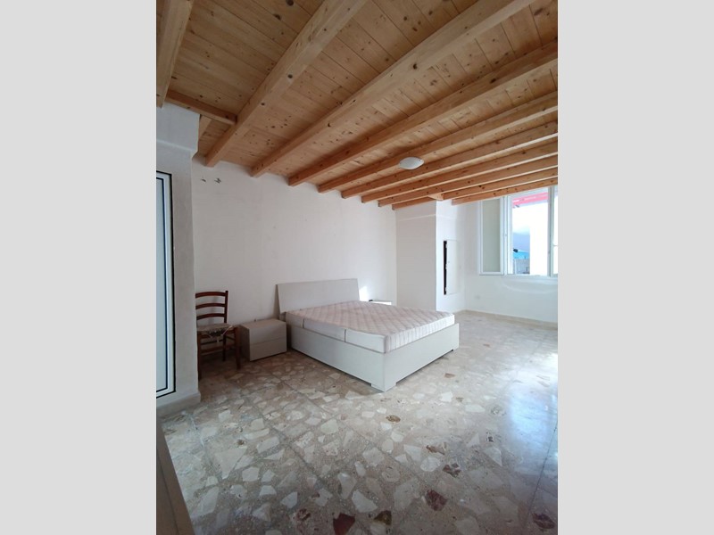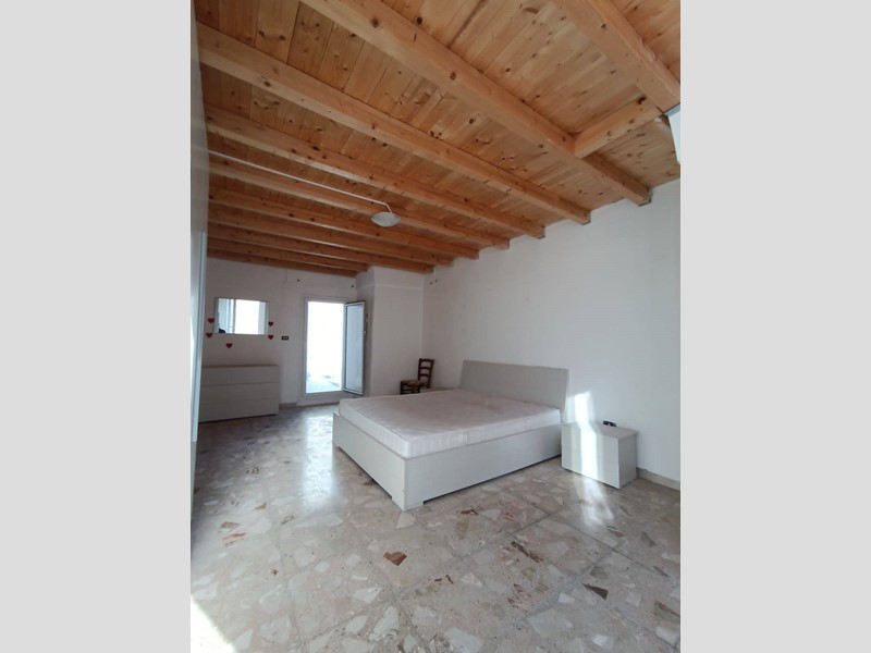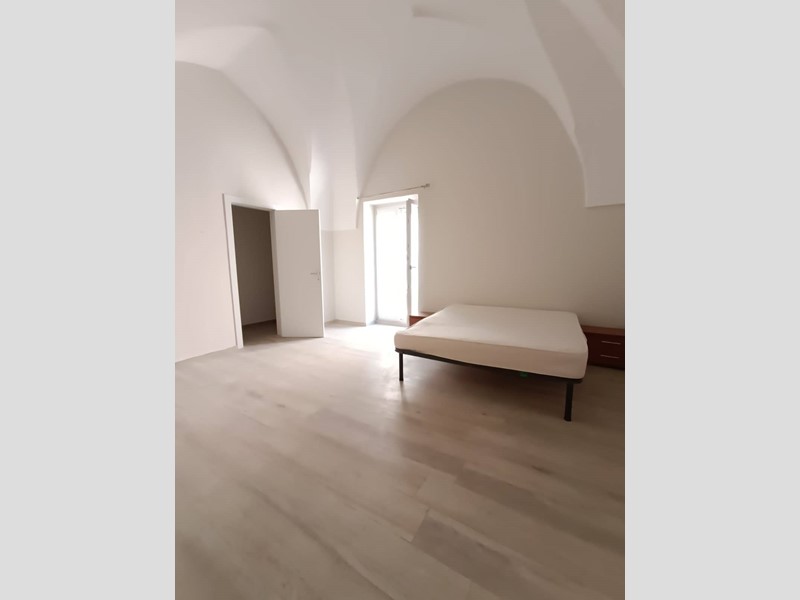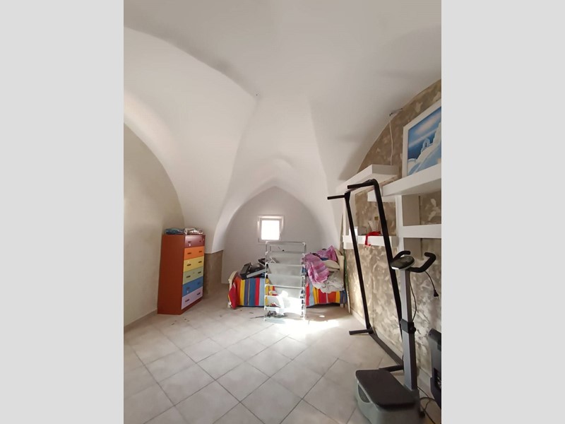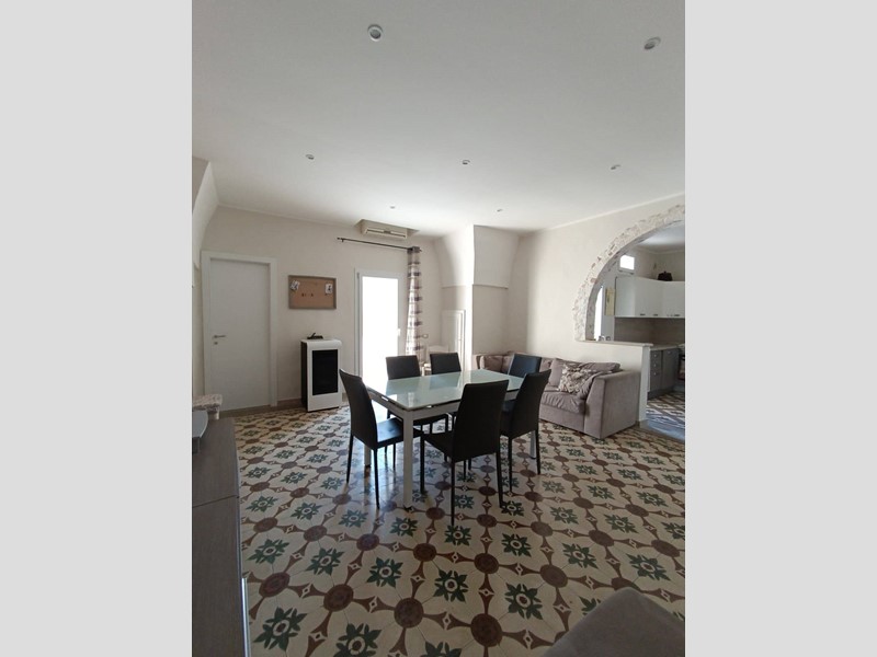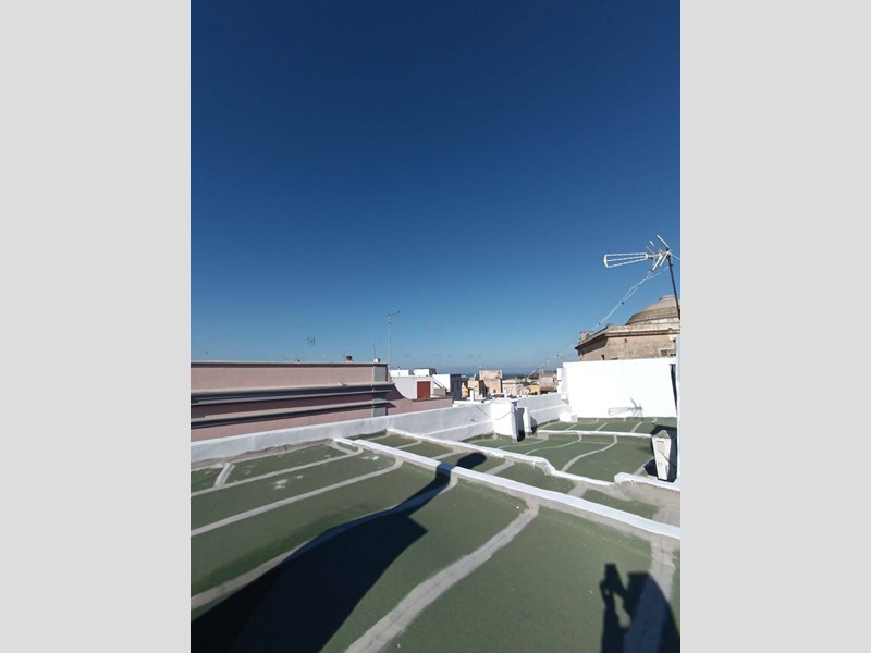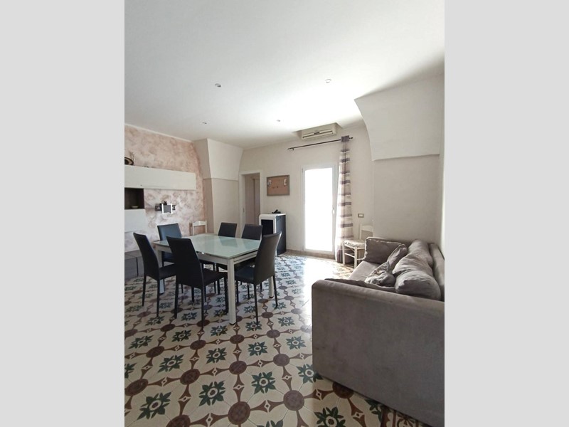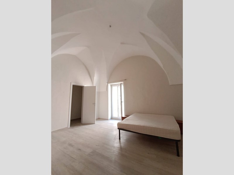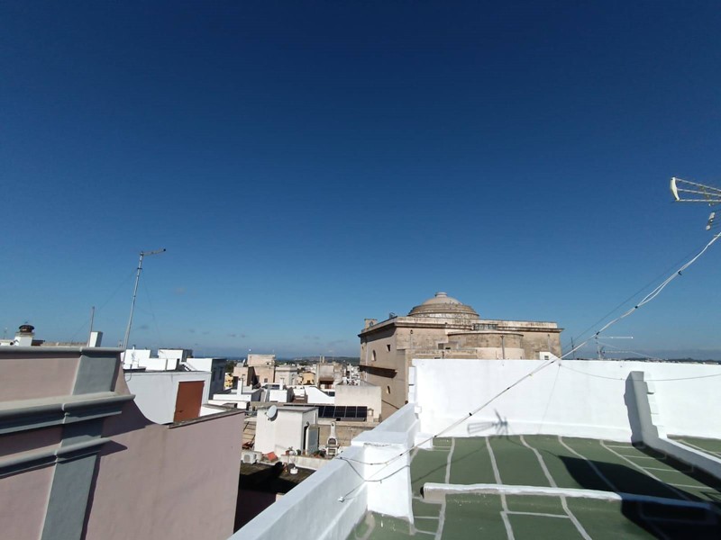 metratura interna di circa 100 mq, composto da cucina con camino, salotto ampio e luminoso, camera da letto matrimoniale, seconda camera molto spaziosa, anti-bagno con zona lavanderia, bagno nuovissimo con doccia, piano ammezzato comodo come vano deposito o camera-studio; completano la proprietà sia un terrazzo a livello, accessibile comodamente dalla zona giorno, sia il lastrico solare con scorcio mare e vista panoramica su tutto il centro storico.