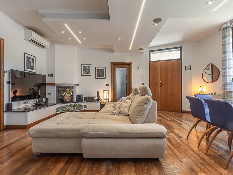 - Soggiorno mansardato con altezze generose (minima 2,45 m massima 3,95 m)