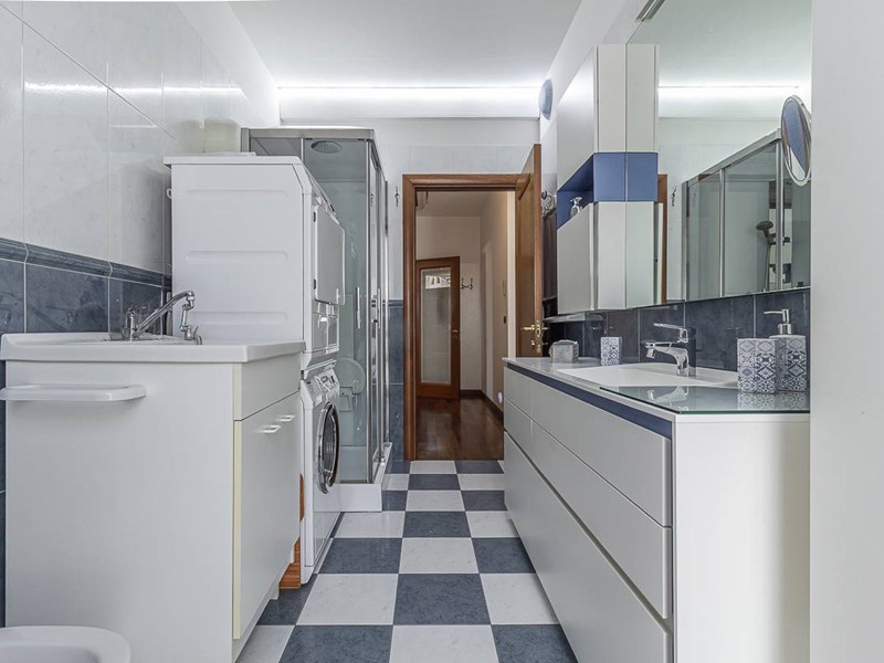 La zona notte si compone di due camere da letto, un bagno padronale, un secondo bagno/lavanderia, un ripostiglio e uno studio adiacente al soggiorno.