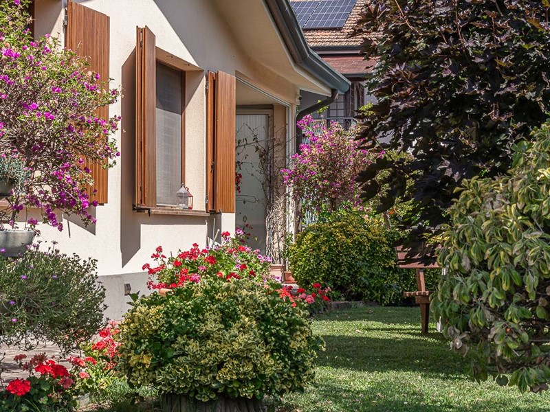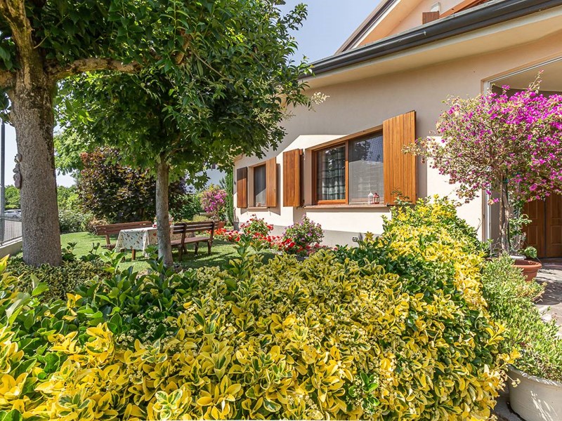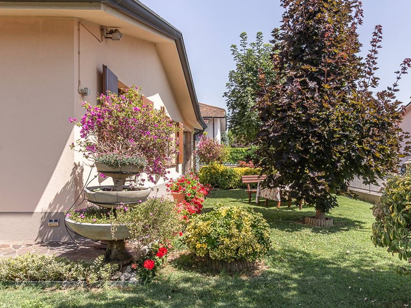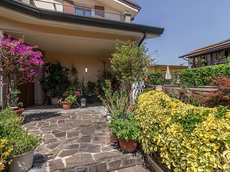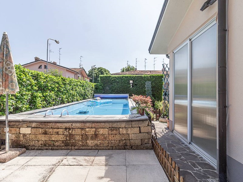 Il giardino privato di circa 580 mq, parzialmente piantumato, ospita una piscina rialzata, impianto di irrigazione, pozzo privato e cancello automatico.