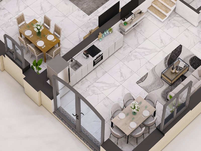 - Ingresso indipendente su soggiorno open space di 31 mq con cucina a vista, perfetta per chi ama gli spazi aperti;