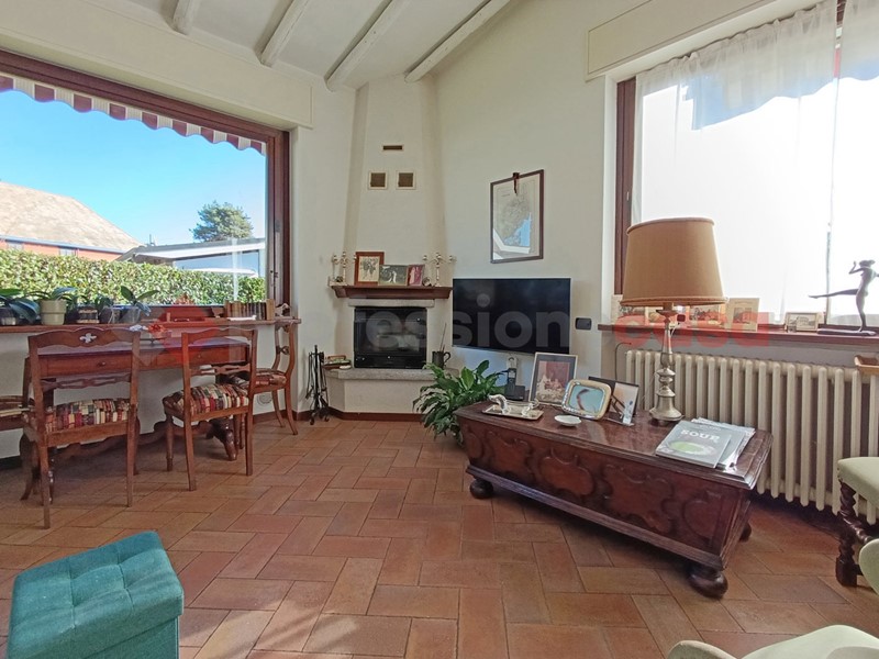 A due passi dal lago e dalle spiagge di Lesa, proponiamo graziosa e luminosa villetta indipendente. L'immobile è sviluppato su una superficie abitabile di circa 90 mq tutta sul piano rialzato, dove troviamo un ingresso con armadi a muro, ampio soggiorno con finestre e porta finestra che affaccia sul terrazzino e sul giardino, cucina a vista, disimpegno verso la zona notte con due ampie camere ed il bagno rinnovato con box doccia. La villetta è circondata da un grazioso giardino piantumato di circa 350 mq, dal quale si accede al piano seminterrato, dove troviamo dei locali cantinati di circa 35 mq. Il riscaldamento è autonomo, i serramenti in legno con doppio vetro, il tetto a vista ed il camino nella zona giorno rendono caratteristico e accogliente l'ambiente.