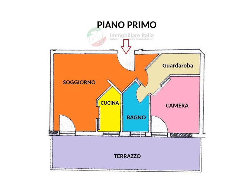 Per quanto riguarda l'appartamento, al piano primo, si raggiunge con ascensore, o scale condominiali. Entrando troviamo disimpegno dal quale si aprono la zona giorno e la zona notte.
