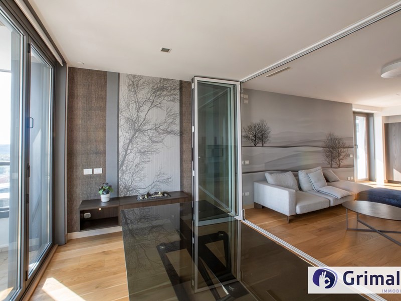 L'unità immobiliare, con panoramica e solare esposizione ad est e a sud con spettacolare vista sulla Capitale, è composta da ingresso con armadi a muro realizzati su misura, ampio salone con cucina a vista con isola e affaccio panoramico dal terrazzo, zona pranzo nella serra bioclimatica con balconata, suite matrimoniale con bagno privato con vasca e riservata area studio con cabina armadio e accesso al terrazzo, camera da letto con area armadi e studio/giochi, altro servizio con doccia idromassaggio, ripostiglio con area lavanderia.