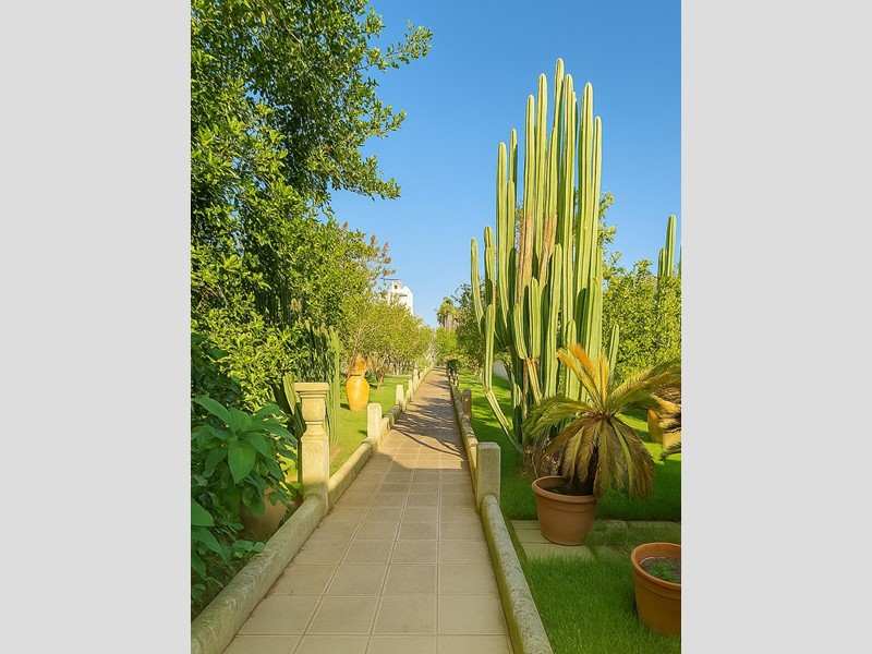 Questa villa indipendente, immersa nel verde di un ampio lotto di circa 1.800 m², è una di quelle. Un luogo che profuma di calma e luce, dove ogni mattina il sole filtra tra gli agrumi del giardino e accompagna il ritmo lento delle giornate salentine.