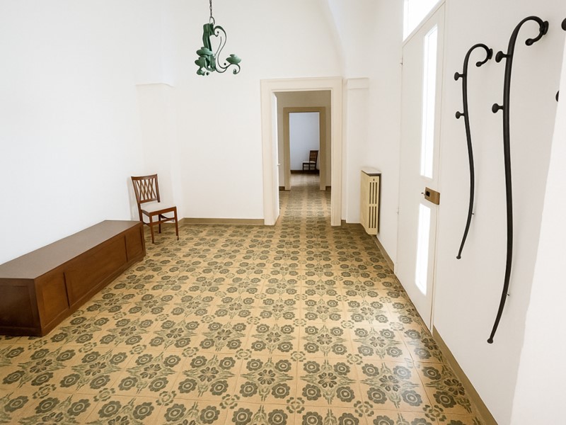 All’interno, la villa si sviluppa su un unico livello con una superficie complessiva di circa 693 m², pronta a essere reinterpretata secondo i propri desideri. Quattro camere, tre bagni, una cucina ampia e luminosa, ambienti ariosi con camino e soffitti alt voltati: elementi che conservano il fascino autentico delle abitazioni salentine di un tempo.