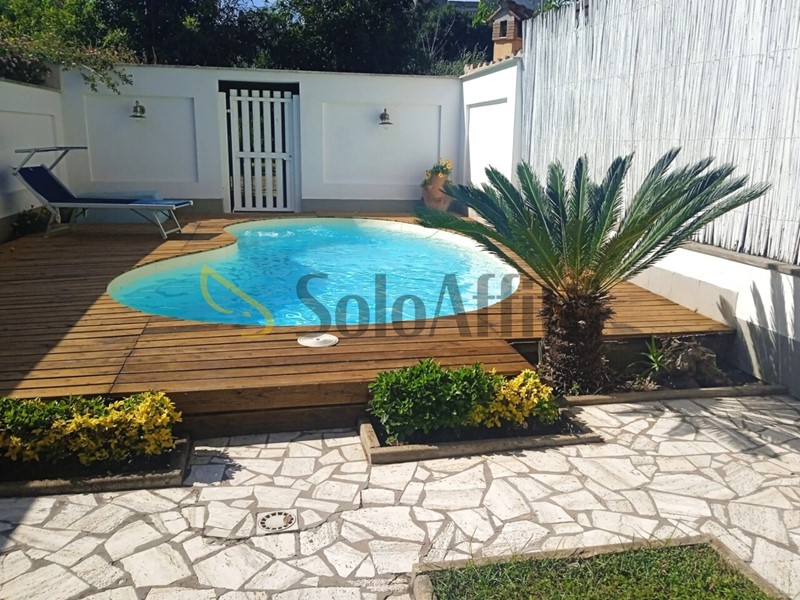 LOCAZIONE TURISTICA . Per il mese di maggio e settembre la richiesta per ciascun mese è 2500 + 300 per la manutenzione della piscina + utenze. Non sono ammessi animali. Fregene è una delle località marittime del litorale romano, famosa per le sue lunghissime spiagge, i suoi stabilimenti balneari e ristoranti che, oltre a offrire relax e comfort, sono teatro di eventi culturali e sportivi che animano le giornate estive. Proprio in questa aria estiva si propone una villa di assoluto prestigio articolata su 4 livelli. Entrando in casa vi accoglierà una comodissima ampia sala doppia con zona pranzo e zona relax, cucina a vista e servizio, salendo al primo piano potrete godere di una grande camera da letto con imponente armadiatura, ampio servizio con vasca e doppio lavabo, un ripostiglio e un balcone, salendo al piano superiore troverete una camera da letto matrimoniale, cameretta, un servizio con doccia ed un balcone, all’ultimo piano mansardato potrete dilettarvi nella suite con cabina armadio, servizio con doccia e un grande terrazzo con lavatoio. A completare l’armonia di questa villa ci sono anche due comodi ampi spazi esterni uno anteriore dove troverete anche un box auto e un deposito bici ed uno posteriore dove potrete rilassarvi fra il patio con salottino e tavolo, il giardino con zona barbecue e la fantastica piscina con doccia esterna. Inoltre la villa dispone anche di cancello elettrico, portone blindato, infissi in pvc con doppi vetri e aria condizionata.