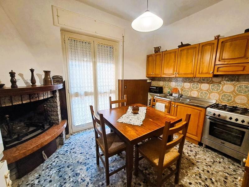 Questo elegante appartamento al piano terra, di ben 90 metri quadrati, è concepito per offrire spazi generosi e funzionali. Varcando l'ingresso, si accede a un soggiorno accogliente e luminoso. Il cuore domestico è rappresentato dalla cucina, con un tradizionale camino e servito da un pratico terrazzo, l'ideale per il relax e cene all'aperto.