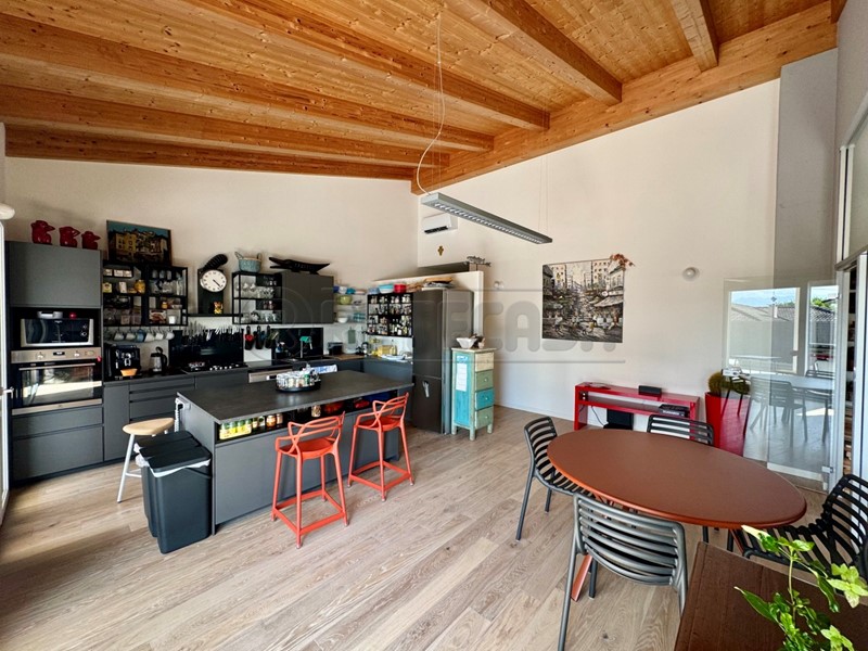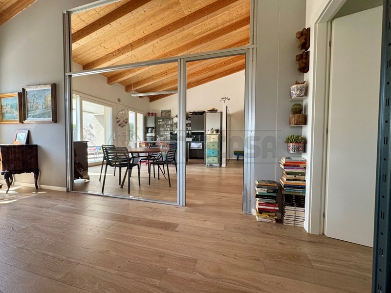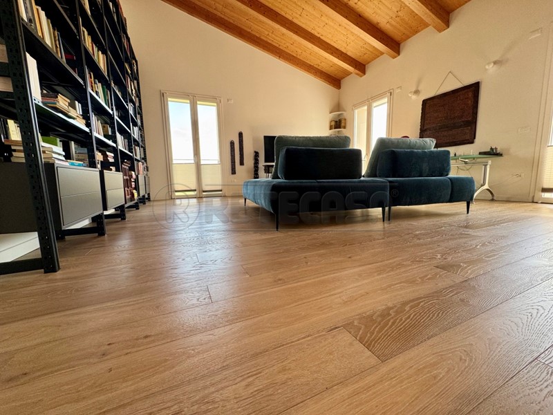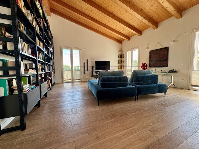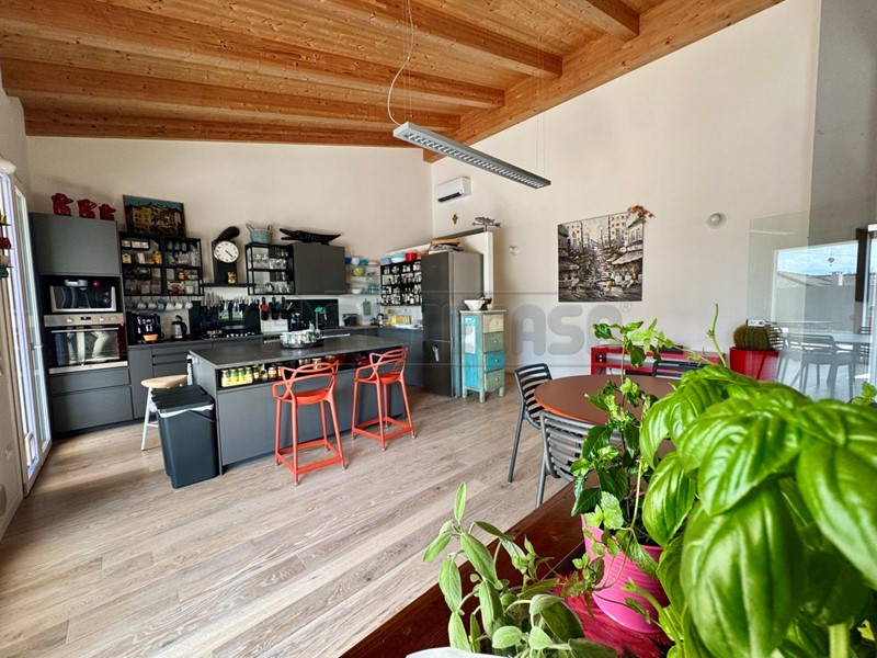Su contesto di sole 4 unità elegante ed esclusivo, grande porzione di quadrifamiliare di circa 150 mq calpestabili, sviluppata interamente su un unico piano, copertura in legno in andamento con possibilità vista l'altezza di realizzare uno splendido soppalco a vista sulla zona giorno. Ampio ingresso strutturato per ospitare un armadio/scarpiera, ampia lavanderia/studio finestrato, enorme zona giorno, ampio dismpegno reparto notte, due camere matrimoniali, la padronale con cabina armadio e bagno privato, e secondo bagno. All'esterno mega terrazzo di 75 mq parzialmente coperto da una pergola bioclimatica, con annesso grande deposito/lavanderia. L'appartamento viene venduto comprensivo di clima, zanzariere ed eventualmente cucina. Al piano interrato garage triplo con basculante sezionale motorizzato con annessa cantina. Pavimento il legno di rovere su tutta l'abitazione, rivsetimenti bagno ricercati e di pregio, e infine spese condominiali irrisorie.