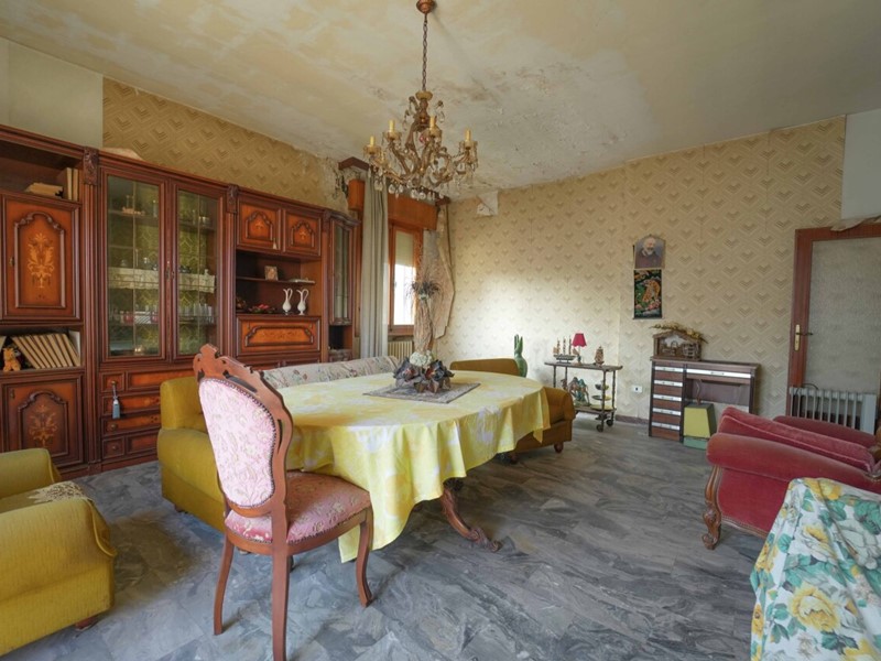 L'immobile è interamente da ristrutturare e offre svariate possibilità di personalizzazione. Attualmente il pentalocale è disposto con ingresso su disimpegno, sala, cucina abitabile, tre terrazzi, quattro camere e due bagni. Al piano sottotetto una mansarda di proprietà di ulteriori 90mq, una cantina di 12 metri al piano seminterrato e un giardino privato con passo carrabile e posto auto di 116mq.