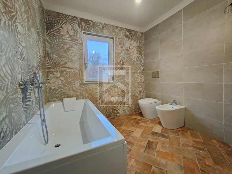 Allesterno la proprietà comprende un terreno coltivato a vigneto, e una stalla adatta per cavalli. È inoltre presente la possibilità di ampliamento della superficie abitativa per ulteriori 50 mq, offrendo così un interessante potenziale di personalizzazione secondo le proprie esigenze.