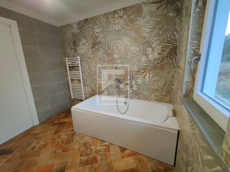 Al piano terra si trovano il garage, una cucina abitabile, un soggiorno con camino, un bagno e una cantina. Il primo piano ospita due camere da letto, un guardaroba, un secondo soggiorno con camino, due bagni e un ripostiglio. Gli ambienti, luminosi e ben distribuiti, conservano il fascino delle case di campagna pur offrendo il comfort di una ristrutturazione moderna.
