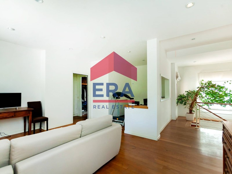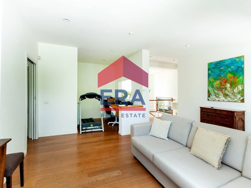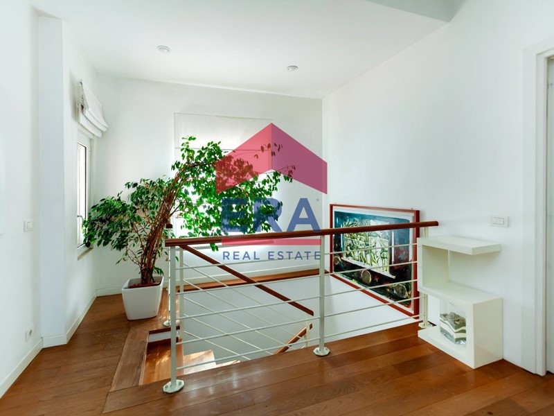 Una scala in legno e ferro conduce al piano superiore, dedicato alla zona notte. Qui si trovano quattro camere da letto ben proporzionate, tre bagni ben rifiniti e unampia zona living con accesso al balcone. La camera padronale è dotata di cabina armadio su misura e bagno privato, garantendo il massimo comfort e privacy.