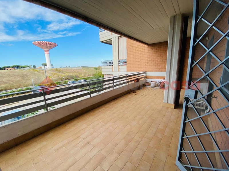 Santa Palomba - Appartamento al primo piano con ascensore: soggiorno, cucinotto, disimpegno, camera matrimoniale, bagno con vasca idromassaggio e terrazzo di 24 mq. Cantina di 6 mq, un posto auto interno scoperto e box auto di 20 mq al piano S1. L'immobile dista 1 km dalla stazione ferroviaria di Santa Palomba e 300 metri dal Parco di Tor Maggiore, attrezzato con area giochi per bambini e pista da jogging.