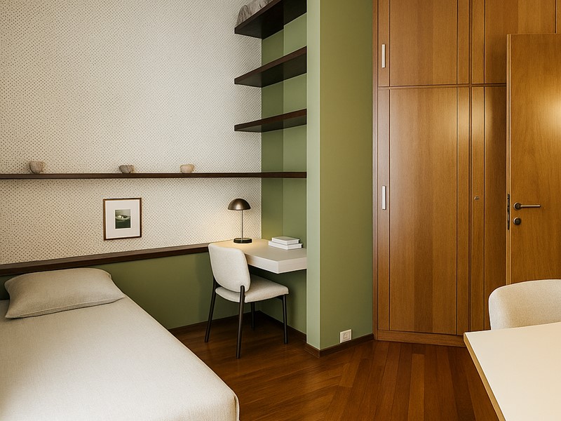 L'appartamento è grande, ma caldo e accogliente, con quegli spazi che oggi non si trovano più: il salone in cui riunire la famiglia nei fine settimana, le camere ampie e luminose dove ciascuno può avere il proprio angolo di privacy, e la cucina grande, il cuore di tante cene e ricordi.