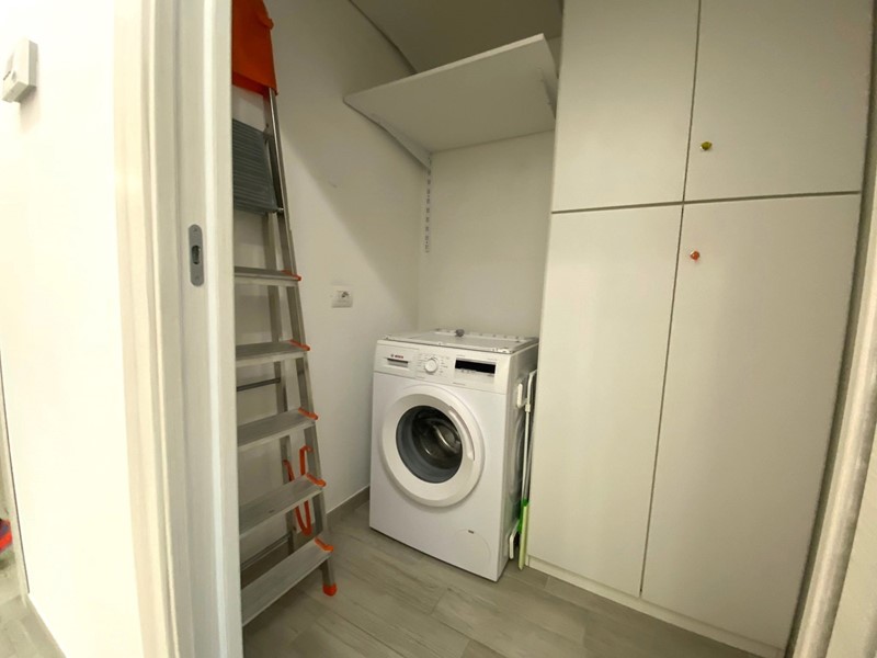Ingresso su accogliente soggiorno con angolo cottura e uscita sul balcone con affaccio sul verde, due camere da letto matrimoniali luminose e ben dimensionate, doppi servizi, uno con vasca e l'altro con doccia, ripostiglio/lavanderia con attacco per lavatrice.