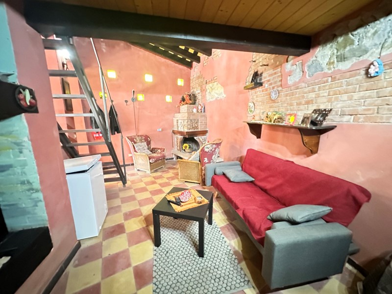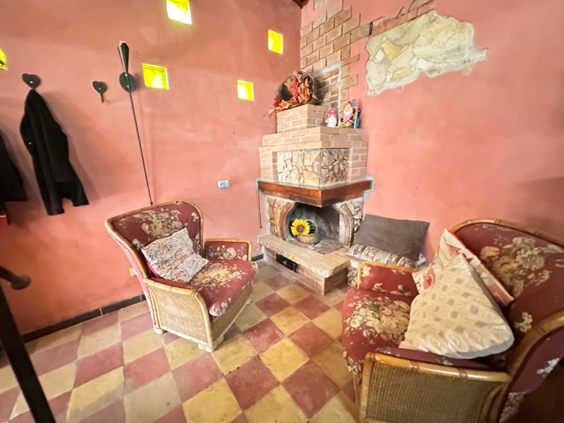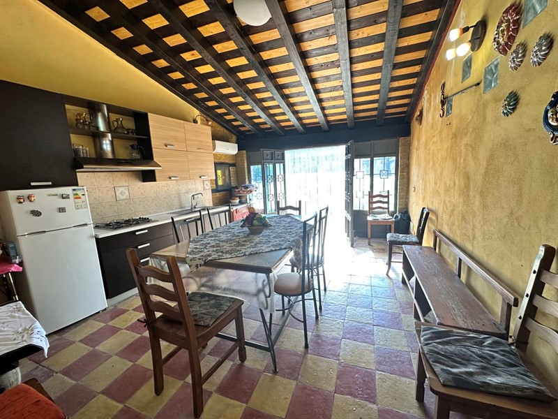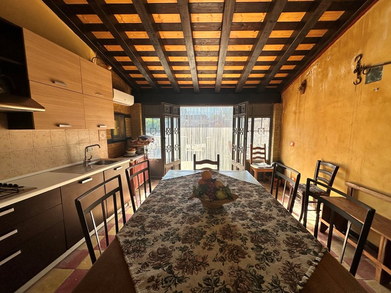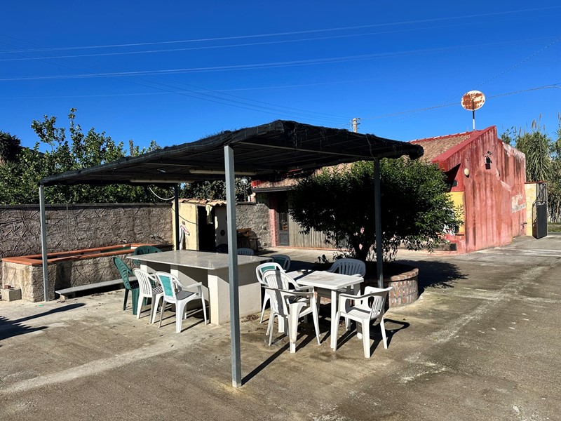 La casa è composta da un ampio soggiorno con caminetto e soppalco, cucina realizzata in veranda coperta, camera da letto e bagno. All'esterno è presente un giardino di circa 500 mq, in parte pavimentato con forno a legna e in parte coltivato ad uliveto e agrumeto.