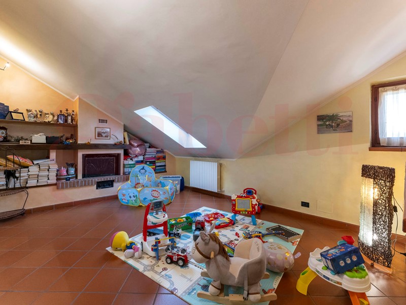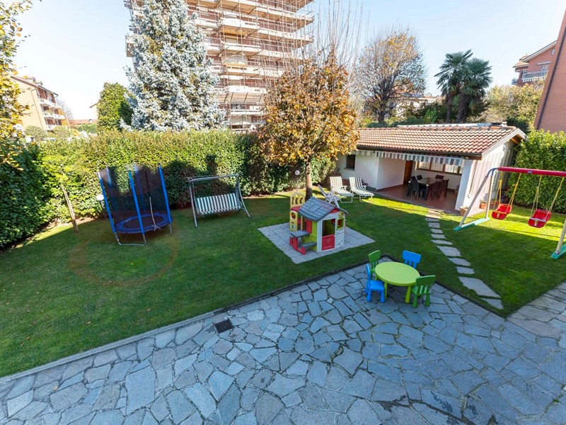 La soluzione è stata oggetto di una completa e radicale ristrutturazione nel 2005 e si presenta oggi in condizioni impeccabili. La parte abitativa misura oltre 300 mq. mentre il giardino e gli spazi esterni si estendono su una superficie di 550 mq.. È caratterizzata per la sua luminosità e per gli ampi spazi abitativi correttamente distribuiti al suo interno sui tre livelli oltre che per la fruibilità del grande giardino pertinenziale.