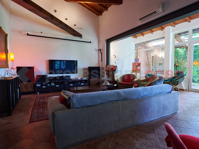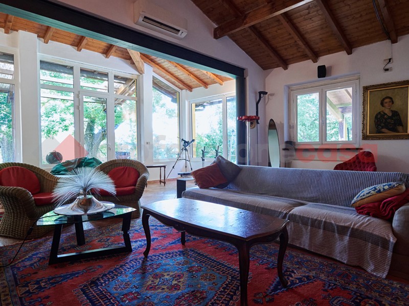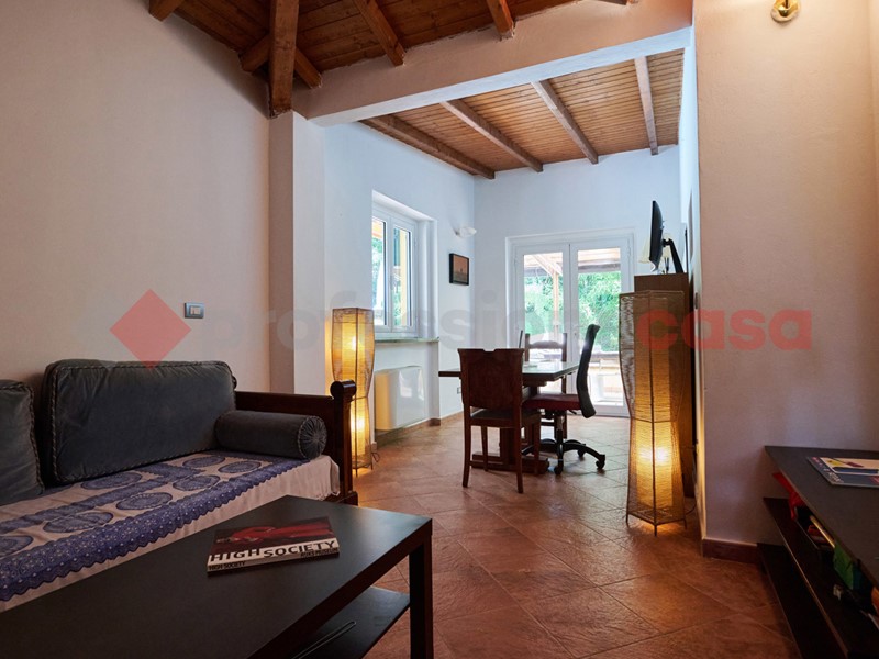 L'abitazione principale è composta da una cucina abitabile spaziosa, soggiorno con travi a vista ed ampia porta finestra con affaccio sulla veranda, un primo bagno, piccolo disimpegno verso la zona notte, una camera da letto matrimoniale con bagno privato e seconda camera da letto.