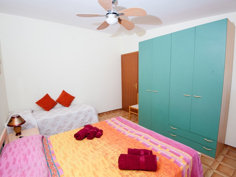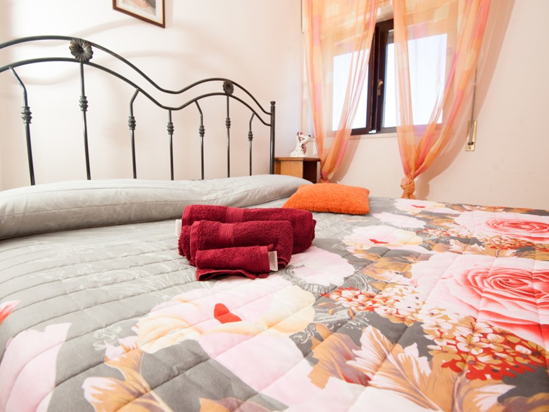 Si entra e al piano terra abbiamo una cucina abitabile, tre care da letto matrimoniali con l'aggiunta di un posto letto, due con bagno privato in camera e uno con bagno esterno per disabili.