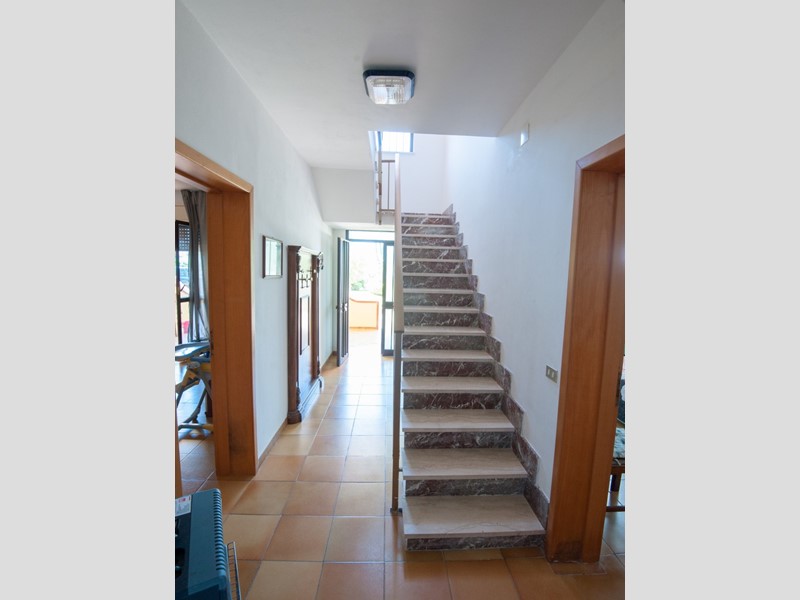 Salendo al primo piano abbiamo due camere da letto, bagno esterno con doppia doccia e doppio lavello, due terrazzini con vista su giardino.