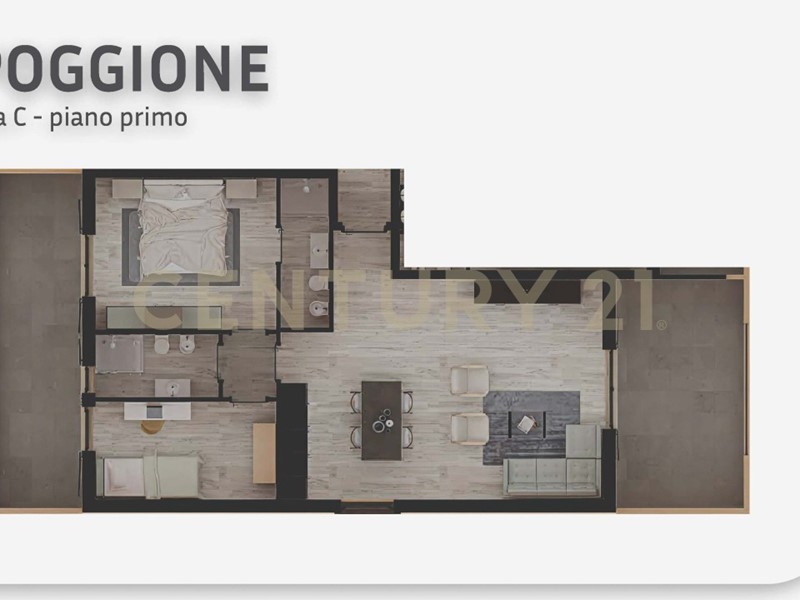 L’abitazione si sviluppa su 82 mq ben progettati, dove ogni ambiente è studiato per offrire funzionalità e armonia: due camere matrimoniali, servite entrambe di un terrazzo di 15mq, due bagni di cui uno en suite, un’ampia zona giorno con cucina servita del secondo terrazzo di circa 20mq, perfetto per momenti di relax all’aperto.