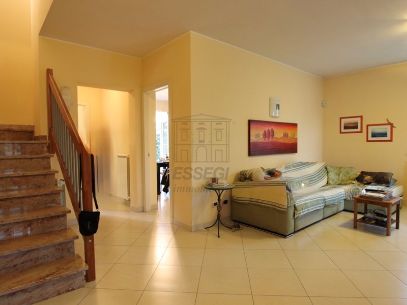 A 3 km da Lucca in direzione est, in contesto residenziale di ville, Essegi Immobiliare propone in vendita villa bifamiliare di recente realizzazione, elevata a due piani fuori terra per mq complessivi 140 circa, libera su tre lati e separata da altra unità da porticato ( uso autorimessa o con apposita chiusura come ampliamento dello spazio abitativo), composta al piano terra da: ingresso, ampio soggiorno che apre su un ulteriore porticato, pranzo (in alternativa studio/camera), cucina abitabile, ripostiglio/ lavanderia e bagno finestrato con doccia; al piano primo: due camere matrimoniali di cui una con bagno privato, camera singola ed ulteriore bagno finestrato con vasca. A corredo giardino privato di circa 300 mq e quattro posti auto di cui due interni e due esterni ( dotazioni: porta blindata, climatizzazione, zanzariere ed impianto di allarme. Richiesta €. 490.000 Nella cifra sono compresi: la cucina, gli armadi ed i bagni completamente arredate. gli NB. Avvisiamo che la localizzazione dell’immobile è approssimativa: l’indirizzo e la posizione sulla mappa non corrispondono alla sua esatta ubicazione