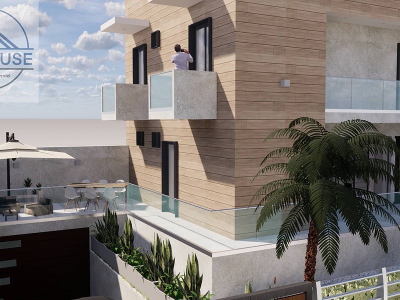 - Primo piano: composto da tre camere da letto ognuna servita da balcone e ampio bagno.