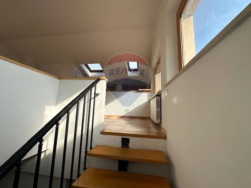 Al piano superiore, si trova la mansarda con un'ampia zona relax con un camino, un bagno e un terrazzo, ideale per godere di momenti di tranquillità e di una vista panoramica sulla città.