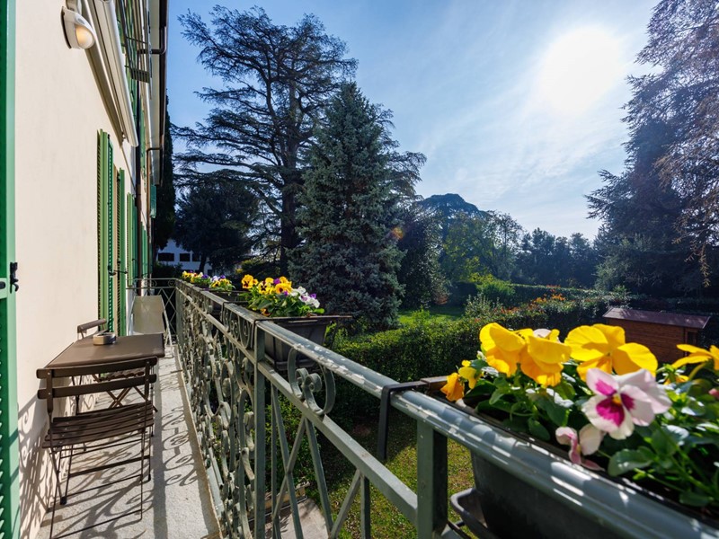 Lappartamento possiede due balconi uno con affaccio su via Colla e un altro più ampio e godibile sullinterno cortile con vista sul giardino botanico ricco di piante secolari e specie rare allestito nell800 da Luigi Colla.