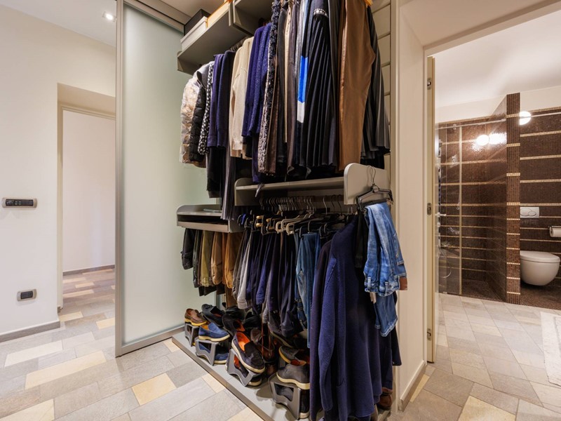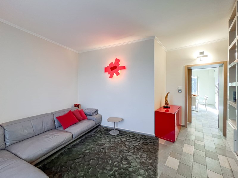 ingresso su zona living con doppio soggiorno, cucina abitabile arredata con cucina su misura ad isola e completa di elettrodomestici di alta gamma, tre camere da letto di cui una con ampia cabina armadio e bagno en suite, due bagni ed una lavanderia.