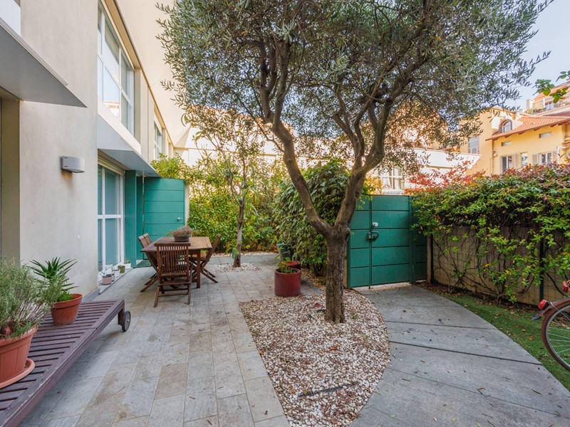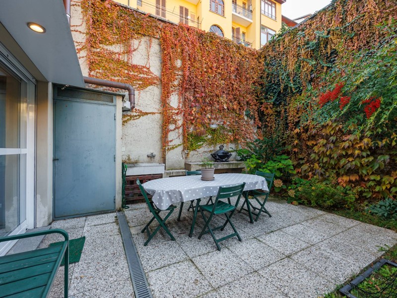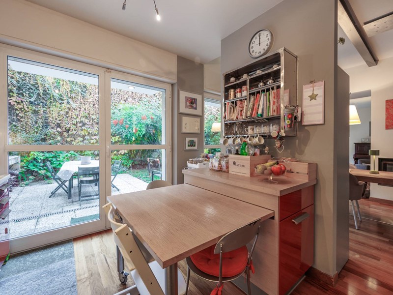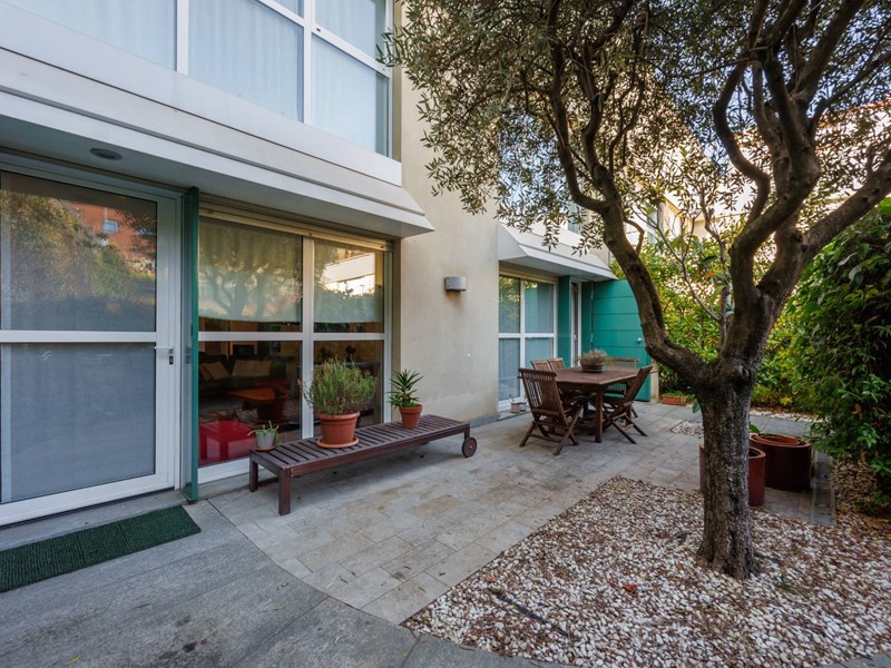 Il giardino privato, sviluppato su due lati, offre diversi spazi: area pranzo esterna, zona relax e angoli verdi curati.
