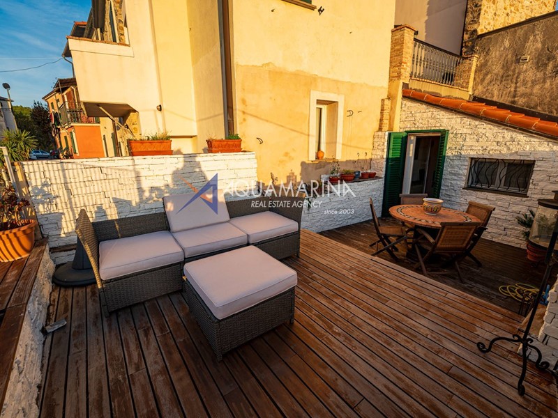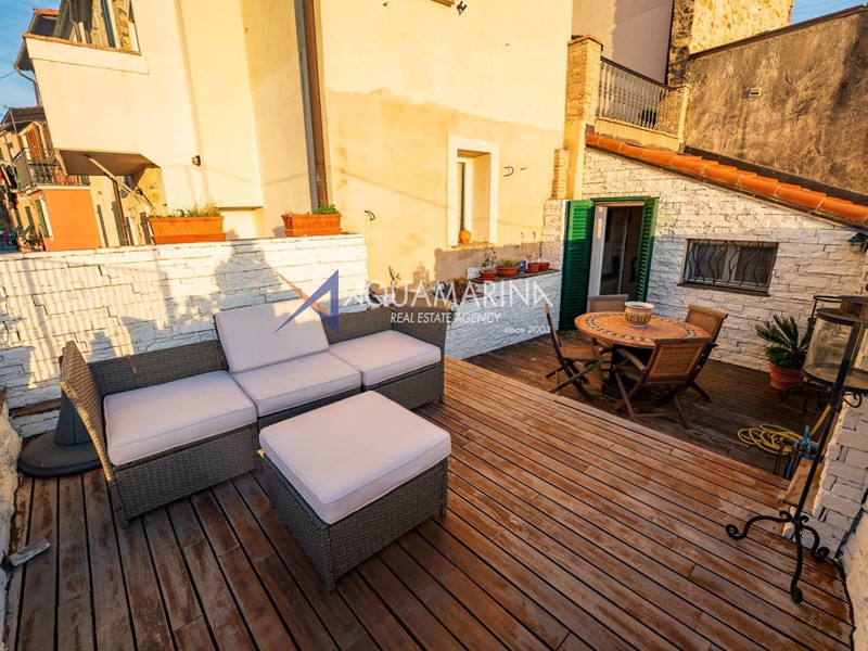 Nel cuore del suggestivo borgo di Cipressa, a soli 4 km dal mare e dalla pista ciclabile, proponiamo in vendita una raffinata casa terra cielo, completamente ristrutturata e arredata con gusto, dotata di ingresso indipendente.