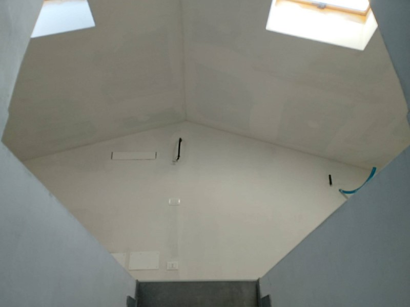 Tramite un'alta rampa di scale si accede alla grande mansarda perfettamente coibentata con due lucernari e possibilità di un terzo bagno.
