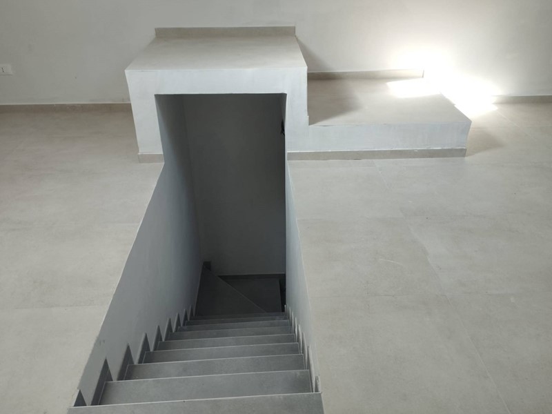 La casa è così composta: L'ingresso è diretto dal giardino nel living con angolo cottura, si ha però la possibilità di realizzare una cucina separata abitabile grande e molto luminosa nel locale adiacente raggiungendo un'ampiezza di 54 mq. per la zona giorno, completa il piano terra un antibagno e bagno finestrato.
