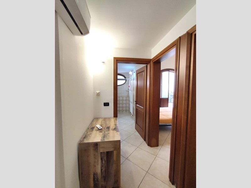 La prima unità è un trilocale con una grande sala dingresso, un cucinino collegato alla sala da pranzo, una camera da letto molto ampia e un bagno finestrato comodo e ben organizzato. Il vero punto di forza è la terrazza privata di circa 90 mq, un ambiente perfetto per momenti allaperto, arricchita da un pannello solare e da unarea lavanderia esterna.