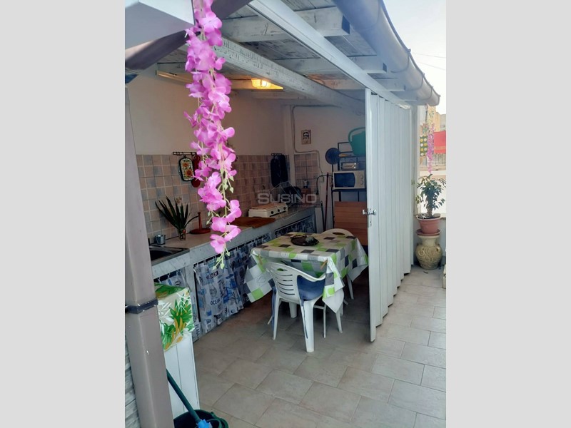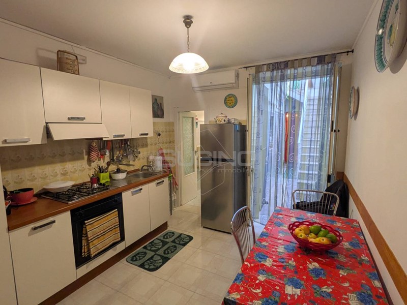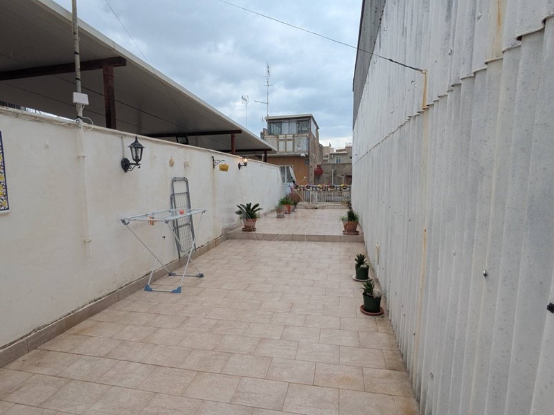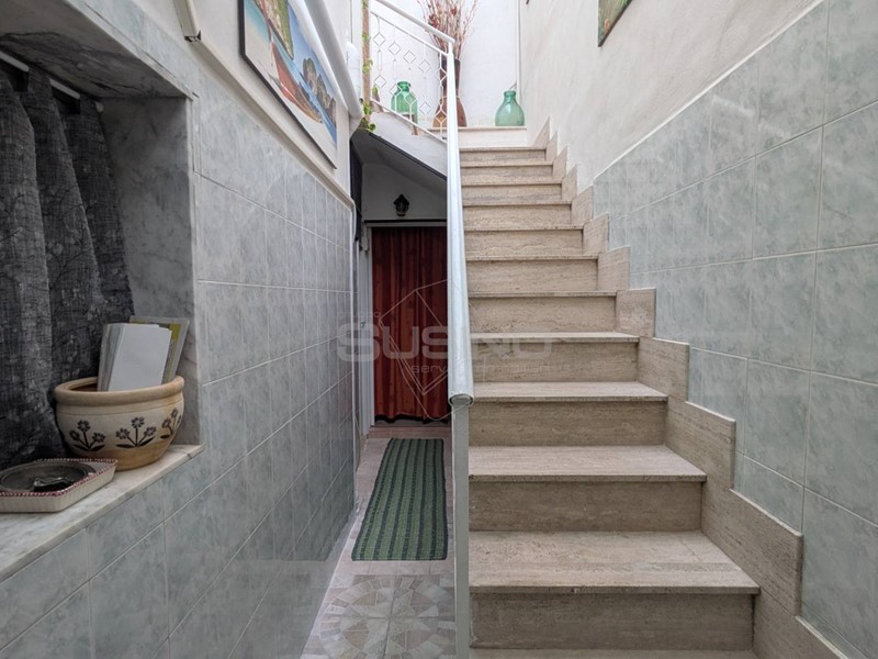 Internamente è così distribuito; ingresso, camera, soggiorno, cucina, bagno, doppio servizio, due camere matrimoniali, cortile, terrazzo.