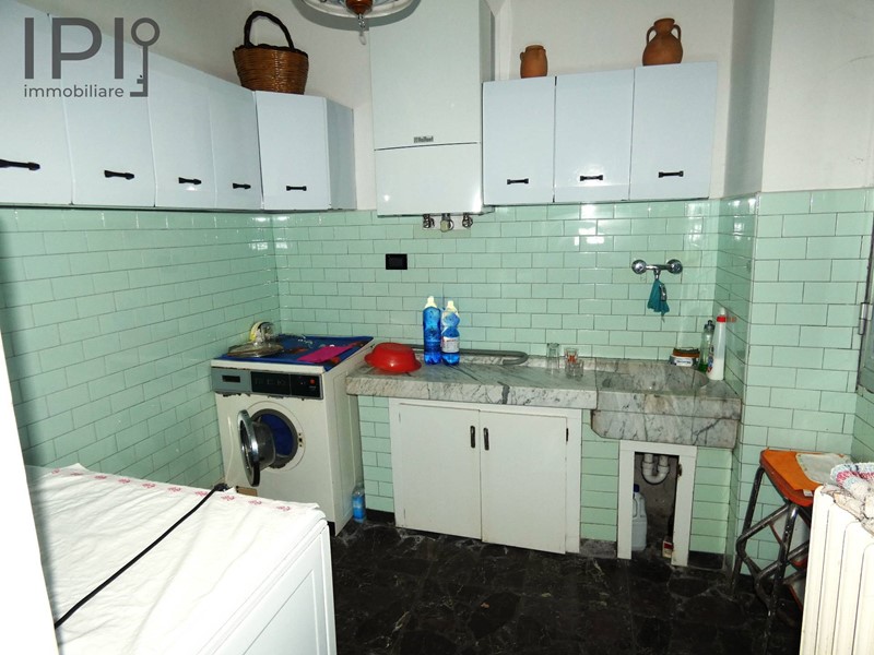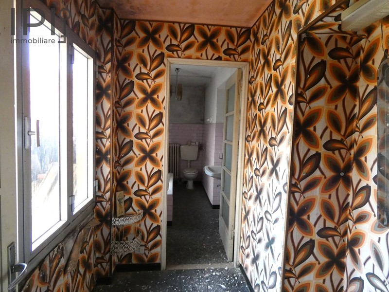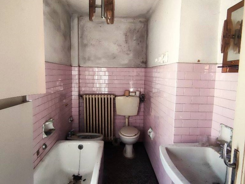 Il secondo appartamento è a piano primo ed è delle stesse dimensioni suddiviso in cucina, sala, 3 camere da letto, bagno e balcone. Le condizioni interne sono da migliorare, per essere abitato ha bisogno di una buona rinfrescata. I serramenti sono in legno a vetro singolo, i pavimenti anche questi in marmo e graniglia, il bagno da rifare, riscaldamento a termosifoni ma manca la caldaia